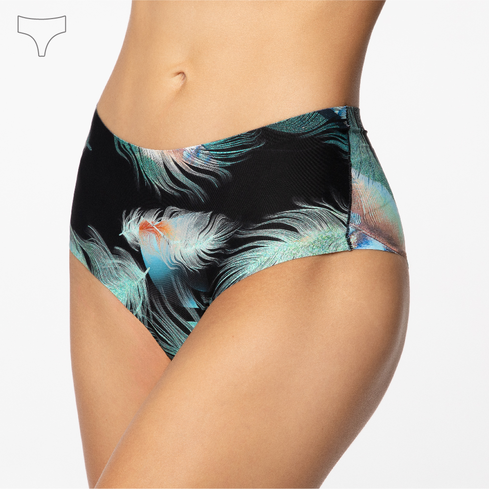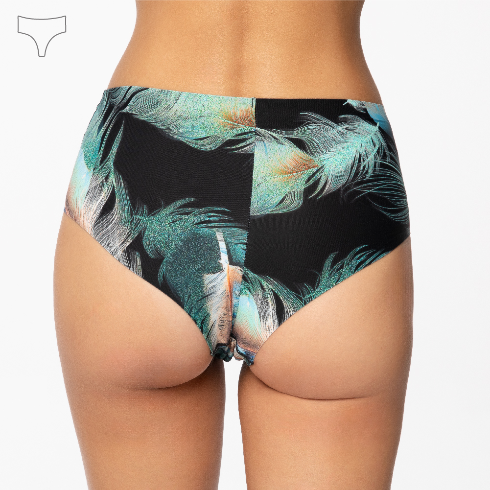 Uwielbiasz bieliznę, która uspokaja i jednocześnie dodaje pewności siebie? Odkryj model Brazilian Maxi z printem Emerald Feathers, który zachwyca stonowaną paletą barw.
