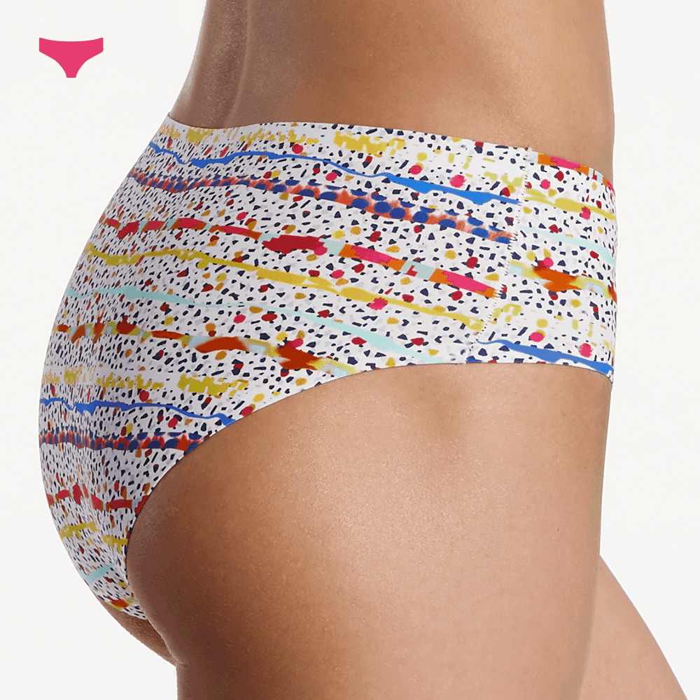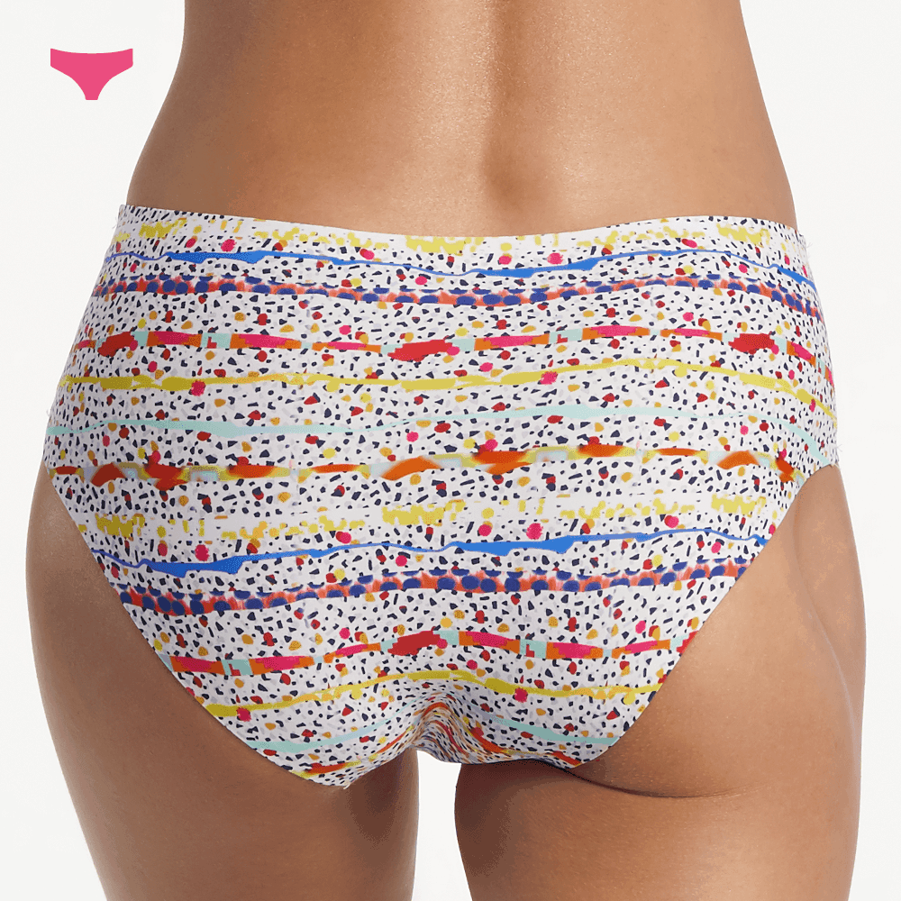 Słodko i orzeźwiająco to właśnie tak smakuje wolność. Sweet Seeds to wyjątkowy wzór inspirowany smoczym owocem w odmianie czerwonej i żółtej. Energetyzujące kolory lata w połączeniu z bielą i nieregularnymi kształtami. To owocowa abstrakcja, która nastoi Cię pozytywnie na cały dzień. Doskonale skomponuje się z jasnymi lekkimi stylizacjami, które kochają lato. Zasmakuj w nowej limitowanej edycji majtek damskich Juicy Wiosna/Lato 2023 od Paloma Pink.