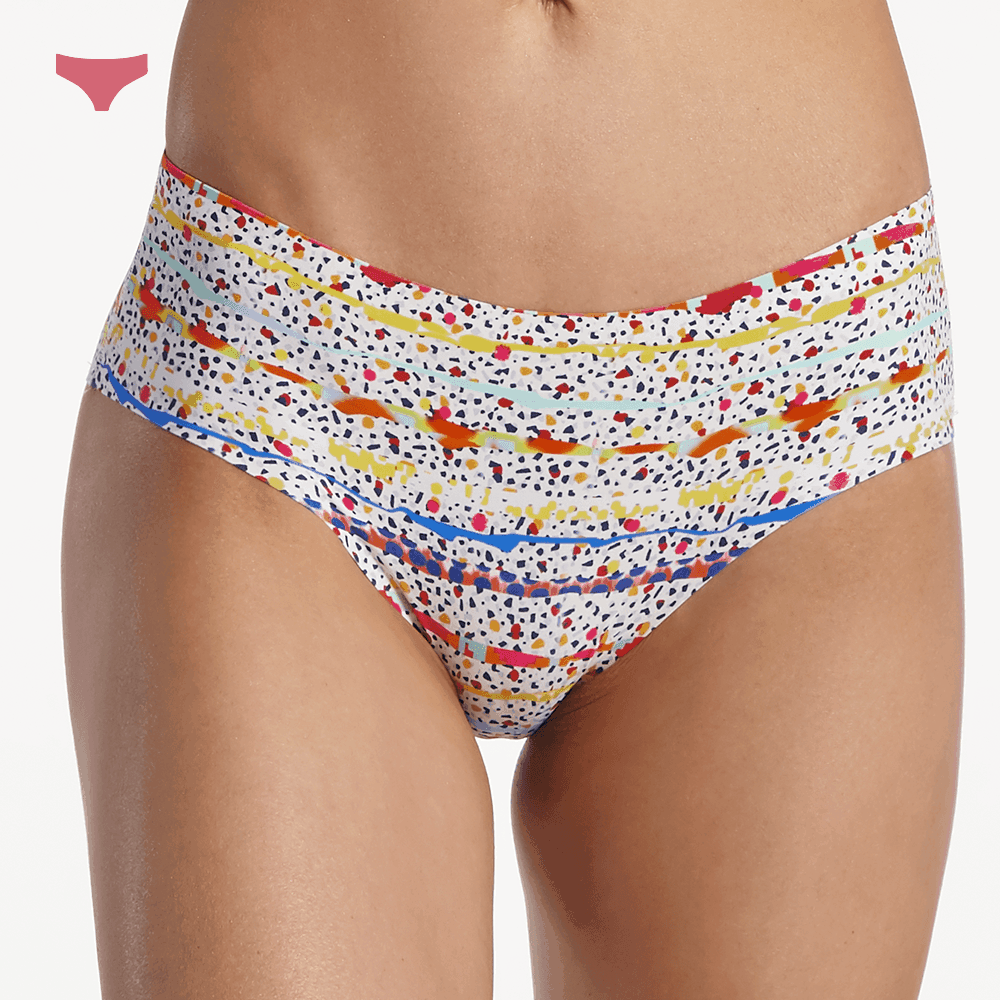 - delikatne klejenie na krawędziach, które zapobiega odznaczaniu się majtek pod ubraniem